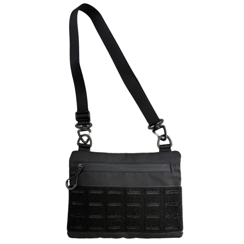Чоловіча сумка через плече мала, тактична, чорна, з патч панеллю, матеріал Оксфорд